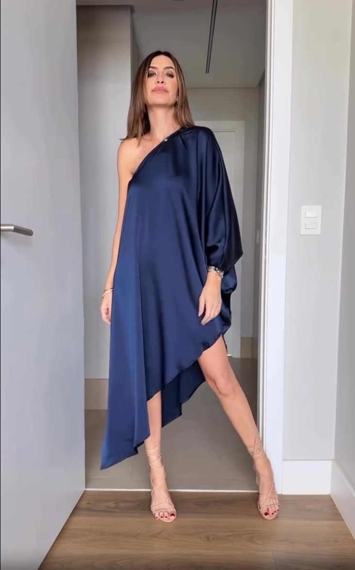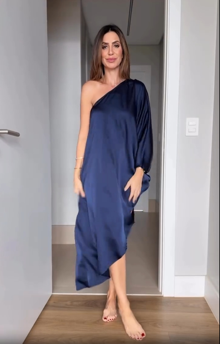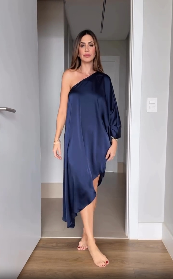 Blue Fashionable One-Shoulder Sexy Versatile Dress