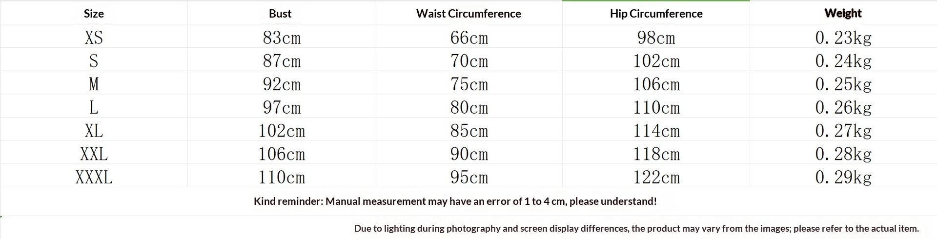 1. Asian sizes are 1 to 2 sizes smaller than European and American people. Choose the larger size if your size between two sizes. Please allow 2-3cm differences due to manual measurement. 2. Please check the size chart carefully before you buy the item, if you don't know how to choose size, please contact our customer service. 3.As you know, the different computers display colors differently, the color of the actual item may vary slightly from the following images.
